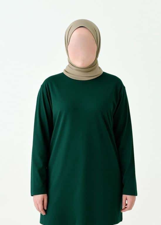 Kız Öğrenciler: Zümrüt Yeşili renkte Ferace veya Zümrüt Yeşili Uzun Kollu Bisiklet yaka uzun Tunik - Siyah Pantolon