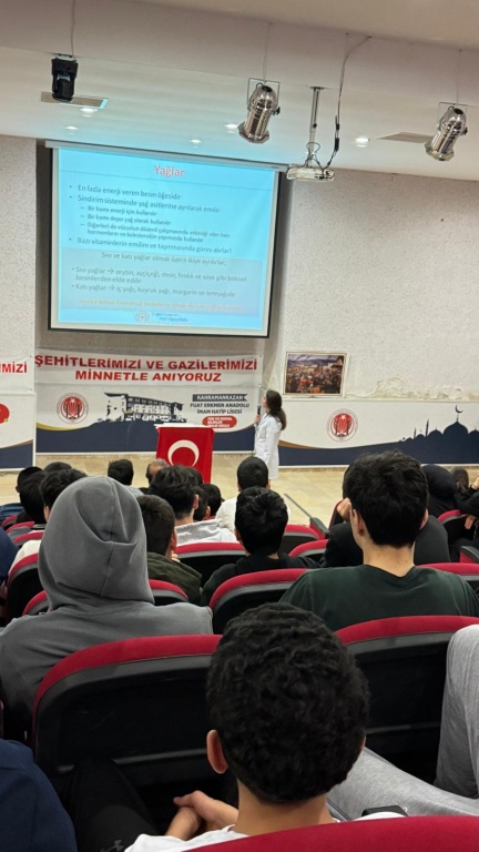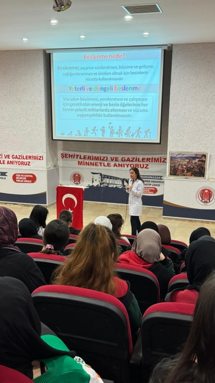 Diyetisyen Simge Zaimoğlu Okulumuzda öğrencilerimize,''Sağlıklı Beslenme'' konulu seminer verdi.Kendisine bu faydalı bilgilerinden dolayı teşekkür ederiz.